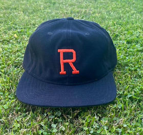 The Brooklyn Dodgers cap pictured below has an oversized button on top and purple tape inside, indicating it was likely made by Coane. But the label inside shows it was sold at Lipman's Sporting Goods in Detroit, which billed itself as the largest sporting goods store in the world in the mid-1950s. It's clearly a professional grade cap, but it was sold directly to fans, perhaps making an early example of a high-quality "throwback" cap. In the early 1960s, throwback caps become more common and were worn at old timers games that were popular during that era — the white cap with pinstripes pictured below (which was made by Rawlings) likely marks the 20th anniversary of the Browns' pennant-winning 1944 team, and just as likely, was made for an old timers game in Shea Stadium in 1964. The Twins cap (which was made by Wilson) was likely used in connection with a reunion or old-timers' game in the mid-1970s. Unlike the Twins cap at the time, it has a red button on top — just like the original Twins team in 1961. Also displayed is an assortment of modern throwbacks, including the St. Louis Browns (Mitchell & Ness), Columbus Redbirds (Ebbets Field Flannels), Cleveland Indians (Mitchell & Ness), San Francisco Seals (c. 1980, New Era) and Miami Marlins (Ebbets Field Flannels).